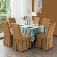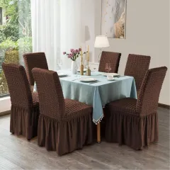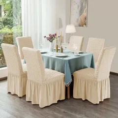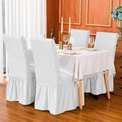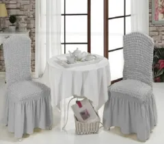 Set 6 huse creponate scaune cu volănașe, Gri Deschis, ideale pentru evenimente, mese festive sau uz zilnic, adăugând un plus de stil și confort.